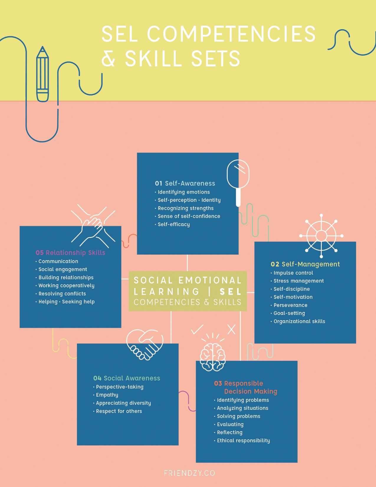 The Friendzy Curriculum is designed to build positive school culture by offering vital social and emotional learning (SEL) lessons to proactively address aggressive behavior, reduce stress, equip students with healthy relationship skills, and improve focus and academic performance, which increases resiliency for success in school and in life. The Friendzy program proactively address the various challenges that students face in their peer-to-peer relationships by teaching the core competencies of Social and Emotional Learning (SEL): Self-Awareness, Self-Management, Responsible Decision Making, Social Awareness and Relationship Skills.